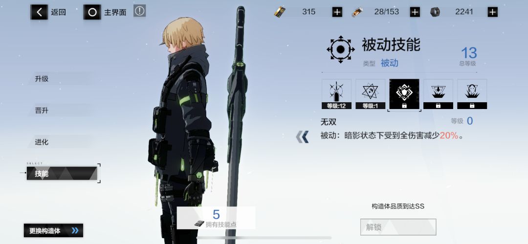 暗影状态下拥有略低于红消的伤害,但是也没有几个其他构造体比得上,这技能最重要的一点就是全属性减少30%的伤害加霸体,配合被动减伤物理24%,ss级觉醒被动全属性减伤20%,让你冲撞的时候真正的成为野蛮人,不讲道理
