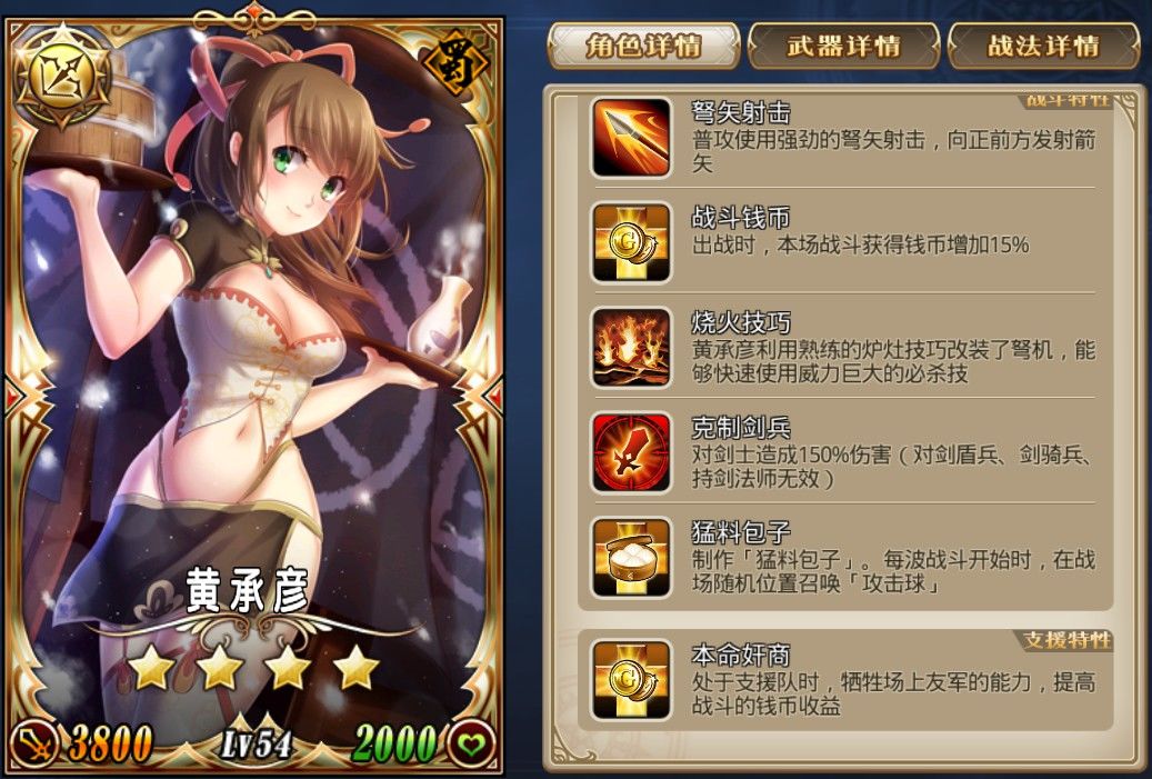 活动内容:奸商来袭!新增《黄承彦的挑战》活动关卡,通过活动可获得特别4星远战角色-黄承彦。 黄承彦卡面以及技能