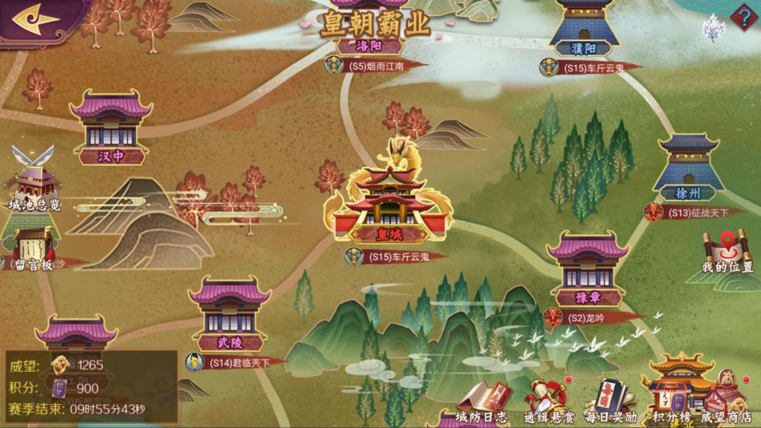 皇朝霸业中有一座座城市,只要打败该城中的守卫军你就可以占领,当然城池也分大小,占领大的城池就可以获得多的奖励。占领完毕会进行积分结算,军团的整体表现也会记录,个人的表现加上军团中各位兄弟姐妹的努力,一起来算获得积分。