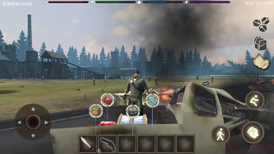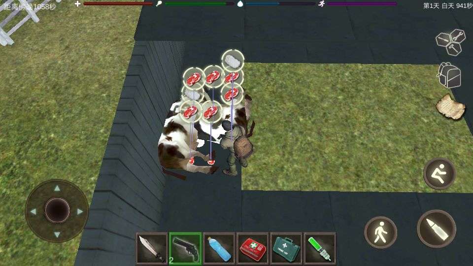 ( ͡° ͜ʖ ͡°)✧第一天最重要的就是去拿生存物资,去农村那里杀奶牛去,这个牛杀了比较好,有大佬说拿草可以给奶?但是杀了比较利于发展,给10个肉和几个皮革,肉的生火制作后可以好几天用,皮革和草弄个初级防弹衣,是不是非常经济实惠(。>∀<。)牛肉什么的,刷火锅最好,特辣的(手动滑稽)