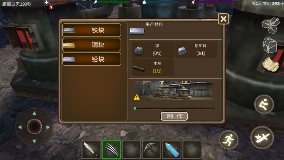 需要一个铁块,铁块到工厂里炉子制作,铁块需要竹炭,煤,铁矿石制作