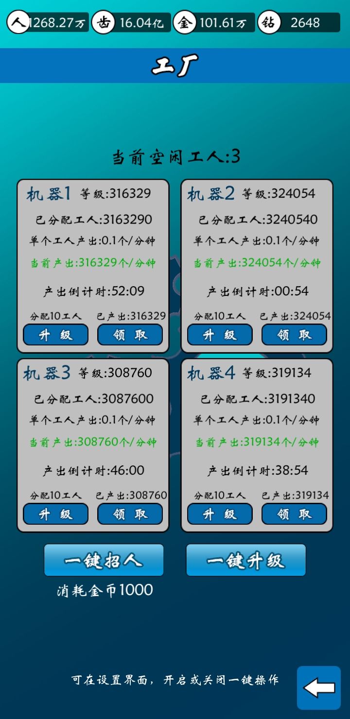 在手机上挂机,去做了顿饭,回来就这样了,可以点很多次领取,不知道有没有限制,已经领了几个亿的齿轮。。账号37440958
