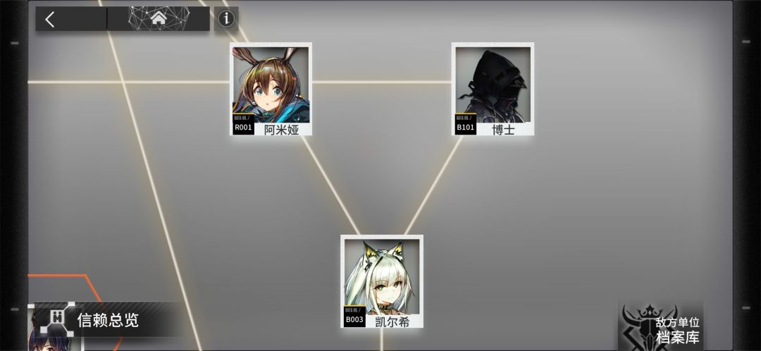 干员档案上的一串符号,英文代表阵营,数字代表编号。我们的阿米娅就是R001,R为Rhodes的缩写,代表罗德岛。但是可以看见博士和凯尔西的英文字母却为B,很明显不是罗德岛,根据以前官网有过的巴别塔势力阵营,我们可以认为,B指的是Babel,既巴别塔。