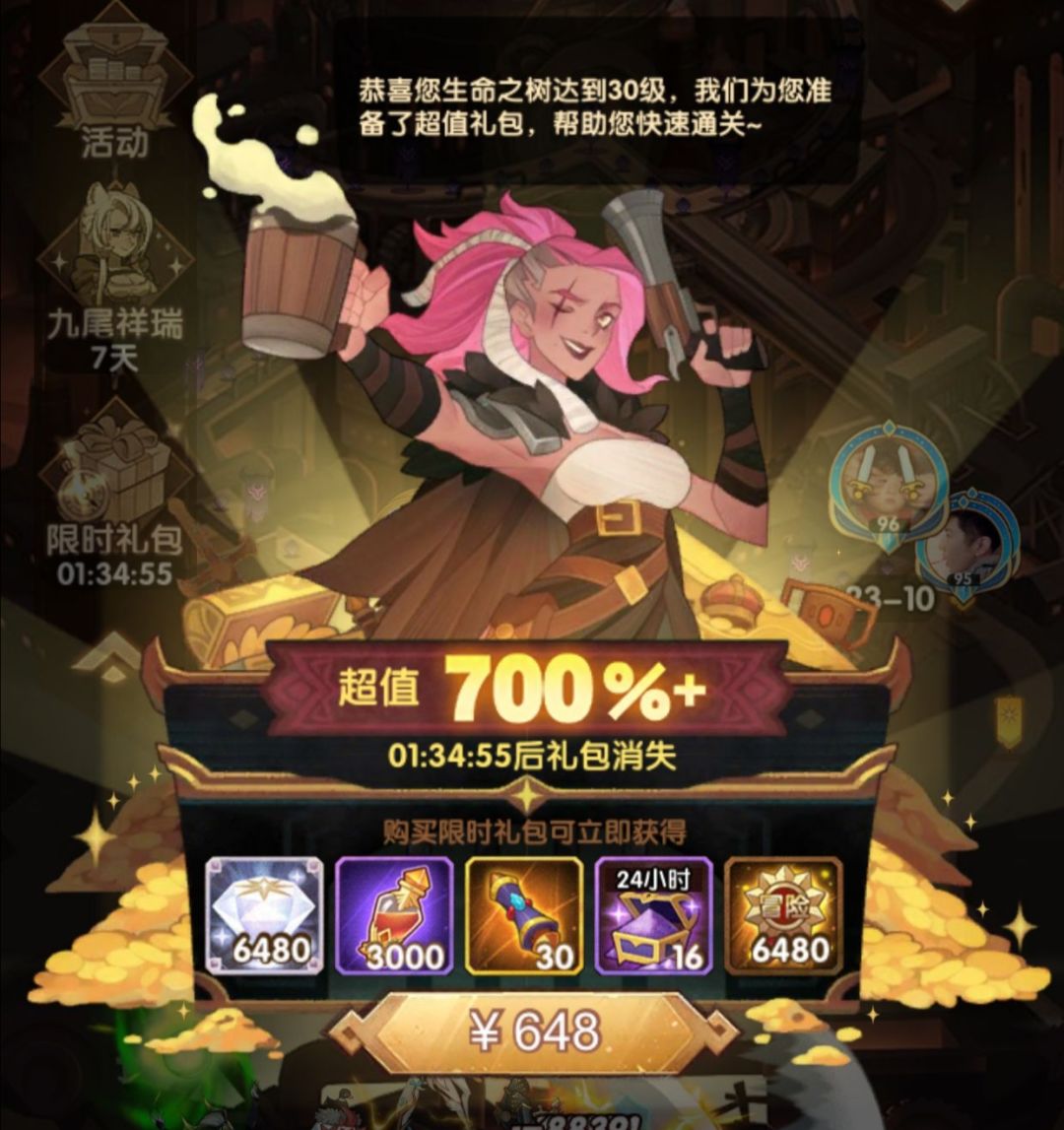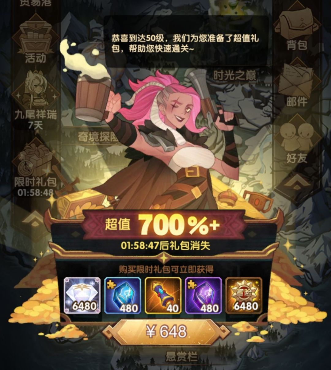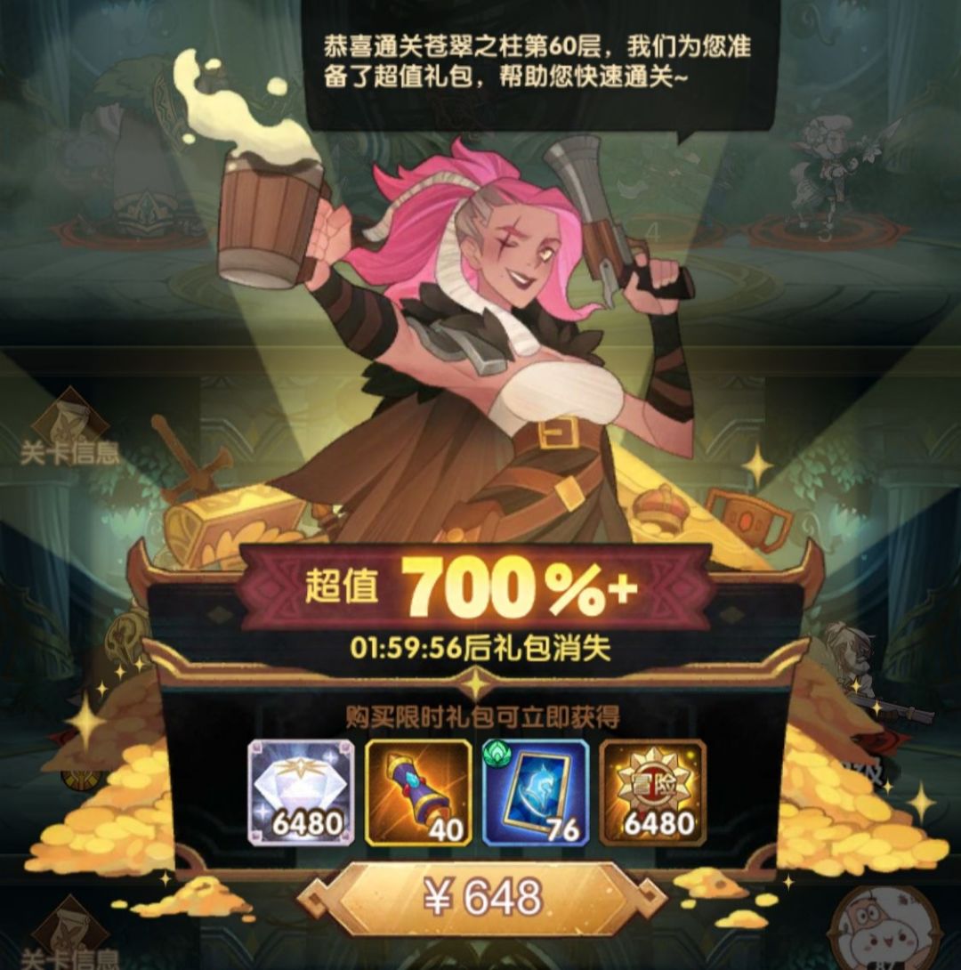 https://www.taptap.com/topic/10286377)氪金优先度 :成长基金 首冲(不太记得是啥,反正6块充就充了吧) 双月卡 双犒赏 300块的亚瑟英雄礼包 低价新手礼包 价格不高于68的限时礼包(金装不买),周和月礼包最低价,日礼包最低价只在开活动的时候自己选择买,平时不买,(价格高于68)—种族塔限时礼包和纯出紫卡(内容只有紫碎和抽卡卷和钻石)的限时礼包,亚瑟鞋子板甲装备礼包,占星卷限时礼包,再后面的比如每日瓜子药水氪佬自己应该知道咋买