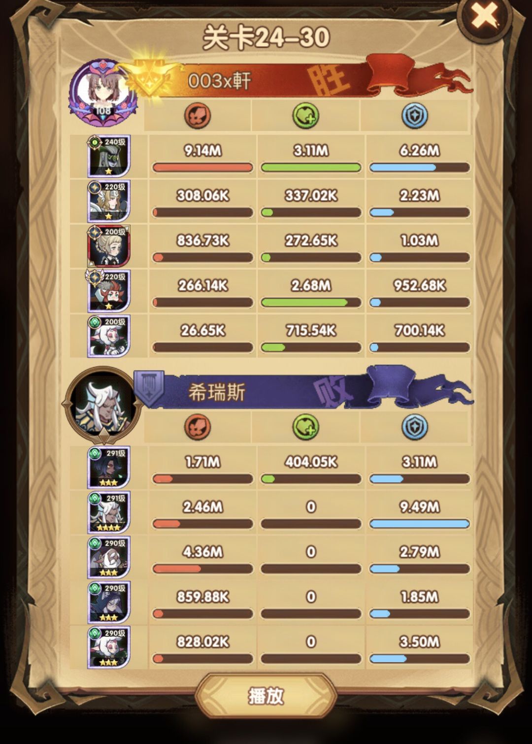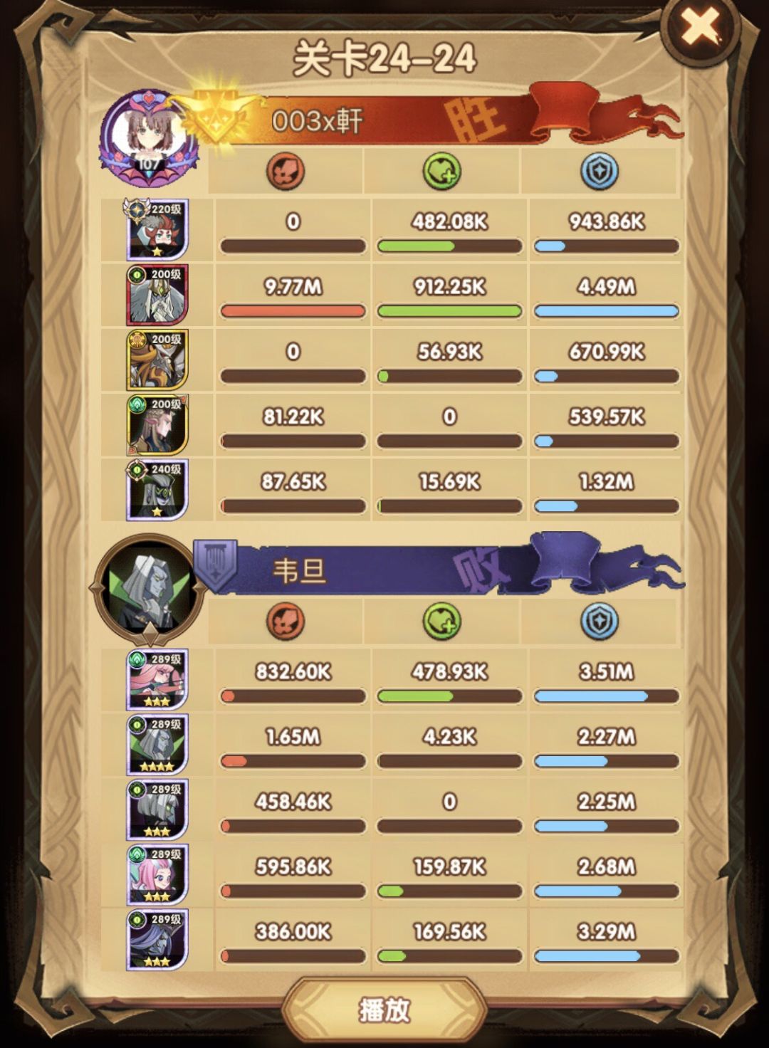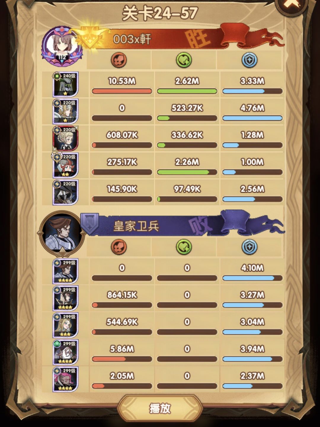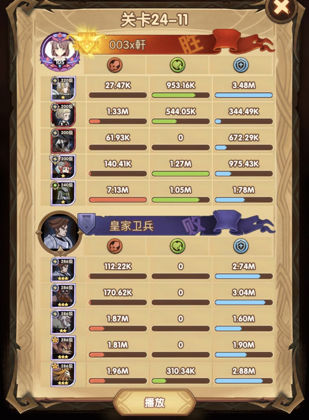 24-32 这关卡了两天,关卡记录大多是骨王,但我少个工具人兔男,本来想周末借了过,但今天粉够了4w,就先给光盾上240试了试,re200次左右过。