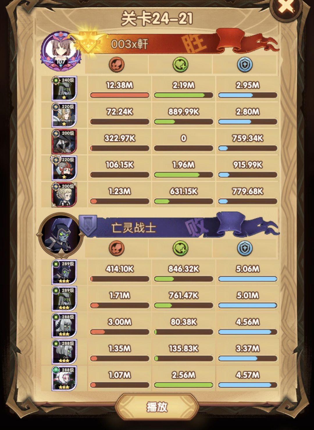 24-21 这关女妖两三个大根本不足以清场,基本需要全员活的下来三宝永动机保住人,练度高的这关应该很简单