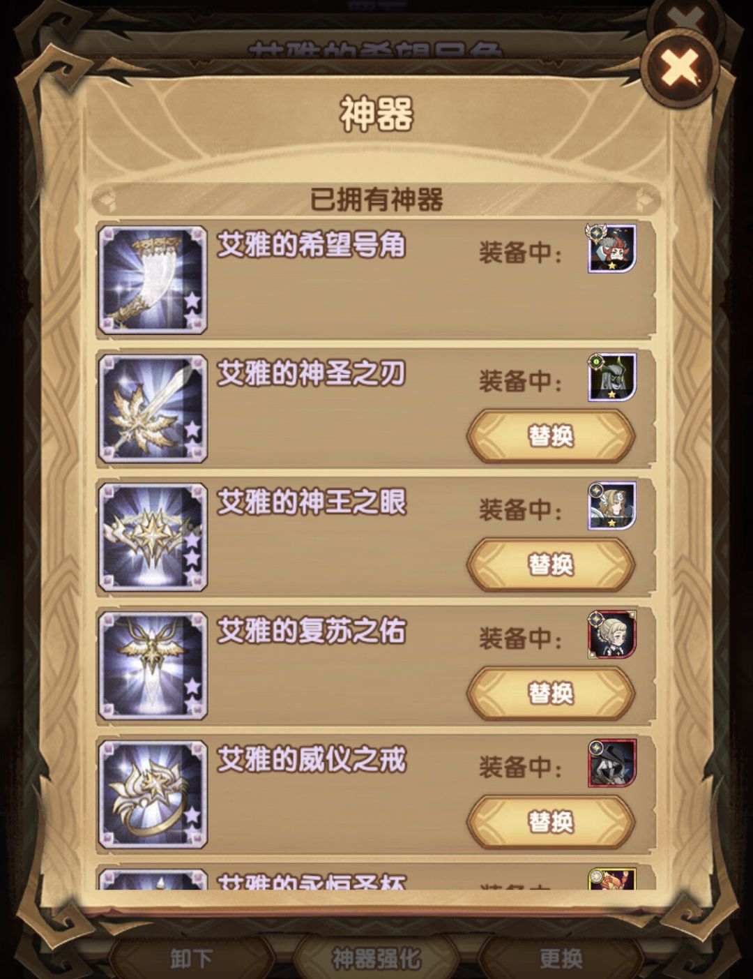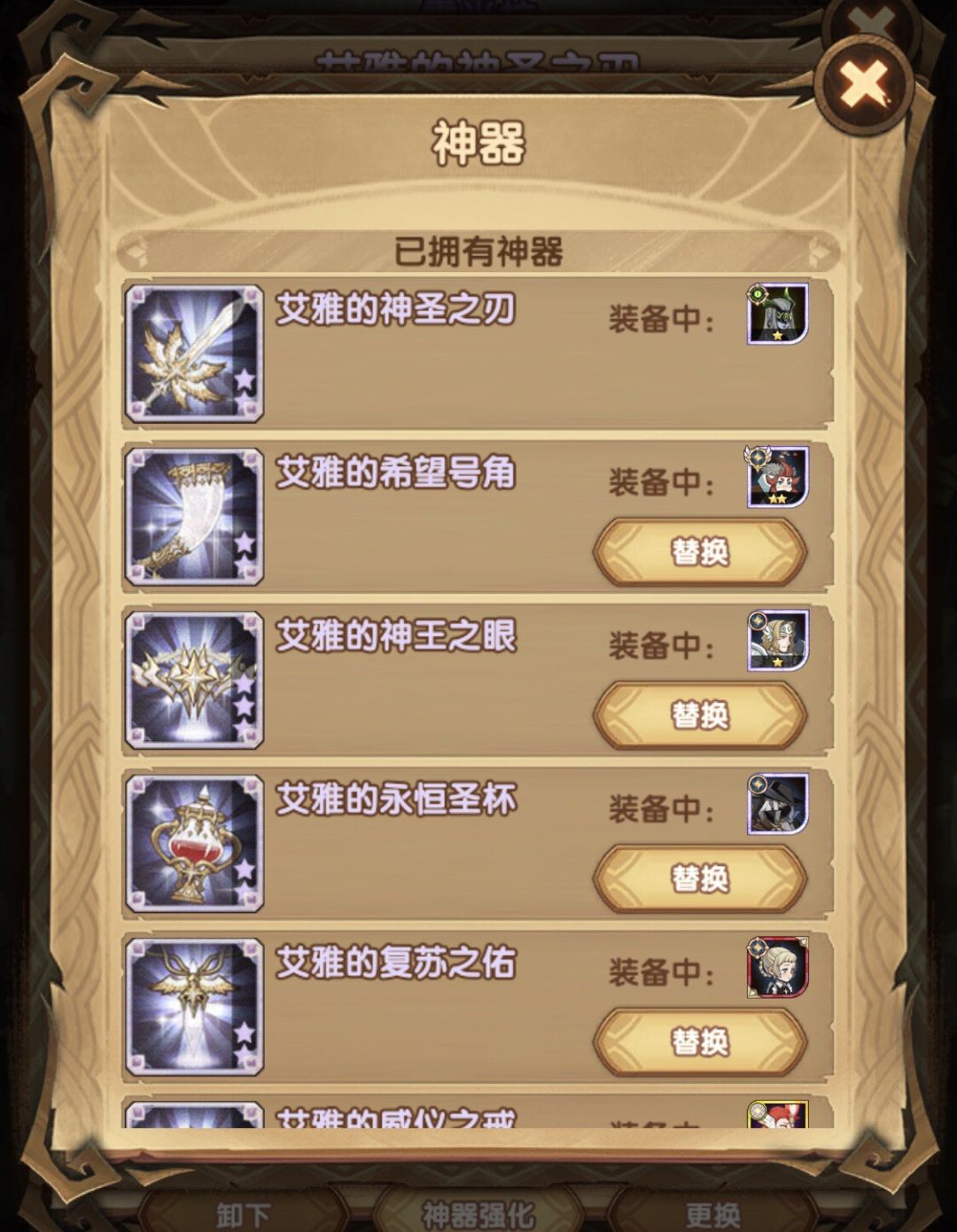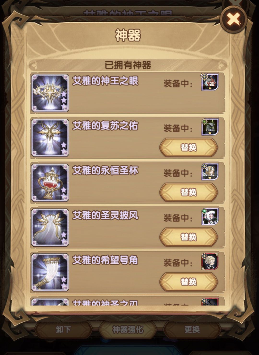 神器:女仆闪避,女妖神圣,商人号角,棺材神王