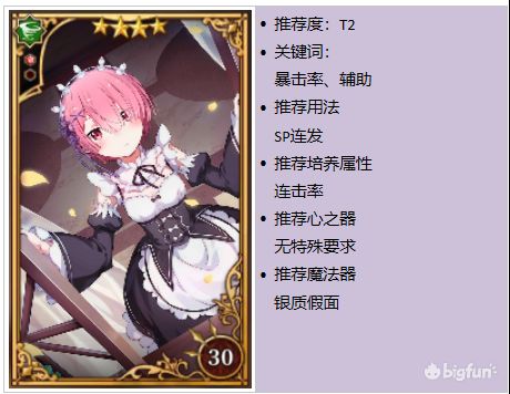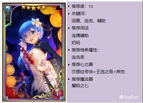 尽管SP有分摊伤害这种不错的效果,但是五星雷姆的回复量并不高。要知道放在后期,我方一个技能经常大几万的伤害,带个回血的心之器就能将血量从残血拉满。