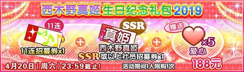 「西木野真姬生日纪念礼包」也将登场,该礼包包含仅西木野真姬的SSR或以上社员招募券!