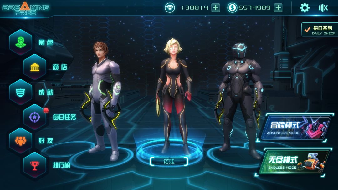 奔向自由是一款3D第三人称后视跑酷类游戏,玩法简单,玩家需要操控来自未来的高科技盔甲进行跑酷,躲避一切障碍和消灭怪物,貌似没有什么故事情节,图文细节详见下: