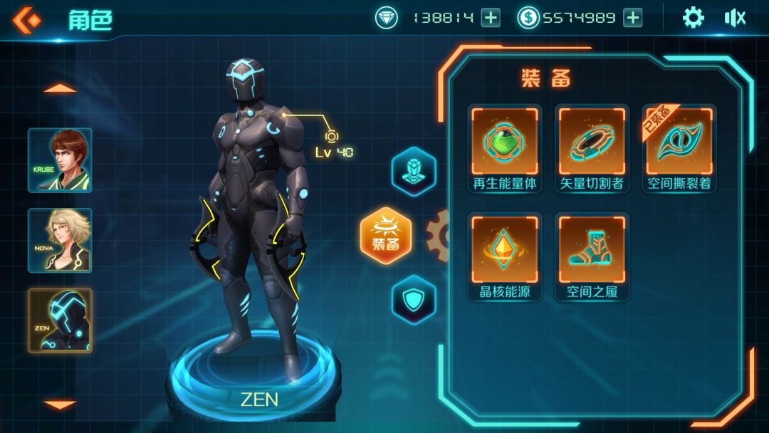点开角色这个样子,可以给角色穿装备增加属性,也可以用金币给角色升级还可以带类似王者荣耀铭文的东东两个