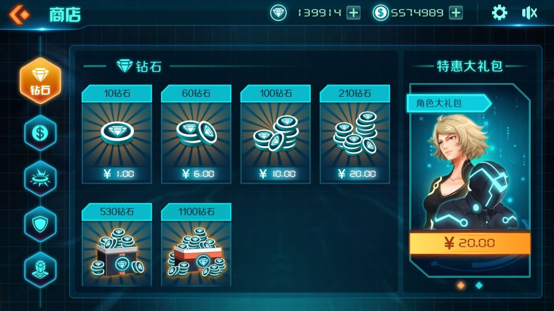 (除了角色)可以免费无限购买,哈哈,可以过一把土豪瘾了
