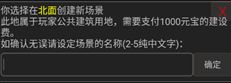 我们看看没有房子的地方 ,点击就可以建房子,比如这里我们就是以北面为例子在里面填上你想要的房子名称,初始建设1000元宝第三步,扩建功能房子(推荐只要练功房就行了)