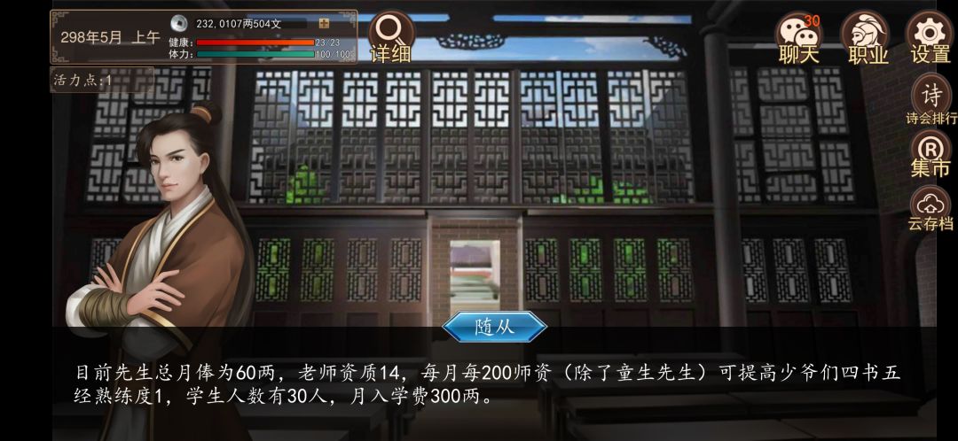 然后想一下还有可能就是私塾和当县令有收入了标记一下298年5月手上的银子2320107两