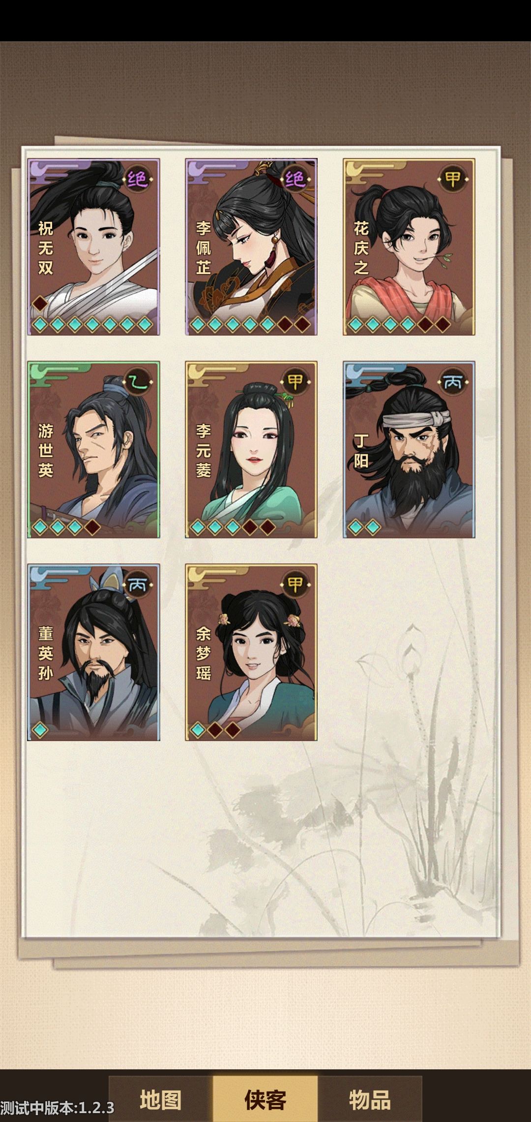 每个英雄的行动力上限分别为8~1。(干活,升职)