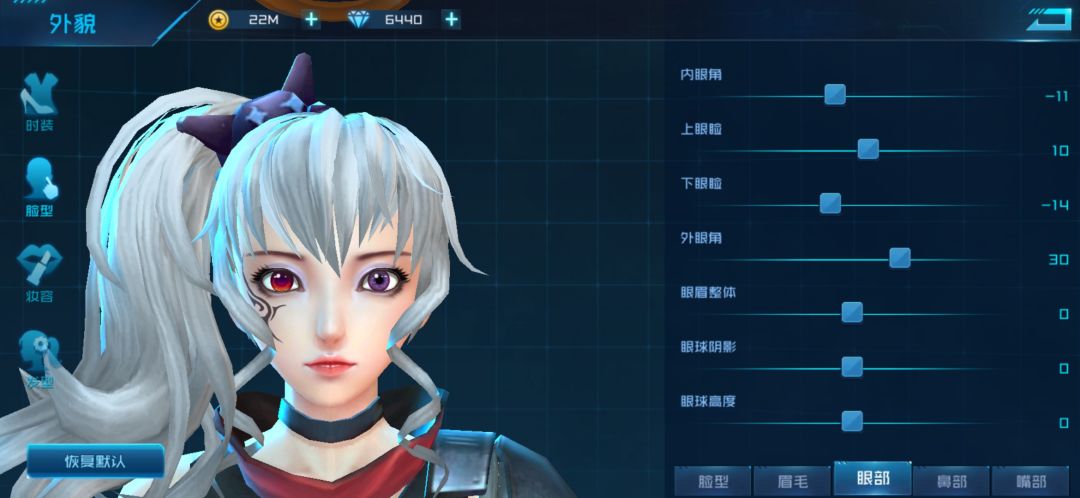三、眉眼距离稍微宽一点,显得大气,但要搭配整体布局,其他细节都确定后,可以快速来回拉动,停在觉得不错的地方(应该是捏脸的最后几步了)