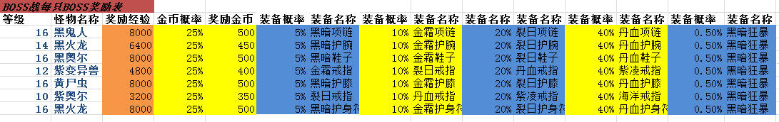 每天中午12:30 和晚上 10:00 心灵草原都会随机出现高掉落BOSS,主要是16级,然后14级,12级,10级也都会相隔出现。玩家可以获得经验,金币和各种装备,特别是“黑暗狂暴之剑”