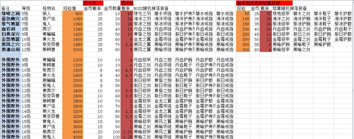 装备品质,洞穴的等级,怪物的等级 从高到低 黑>金>黄>红>紫>蓝>绿>白(洞穴两黑无白)