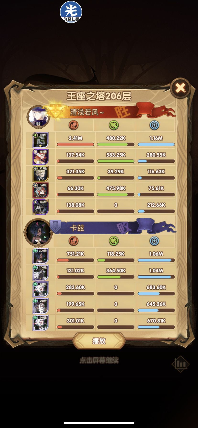 本帖只记录我的王座之塔推图阵容、你们有更好的欢迎一起分享研究 [嗒啦啦2_优秀]