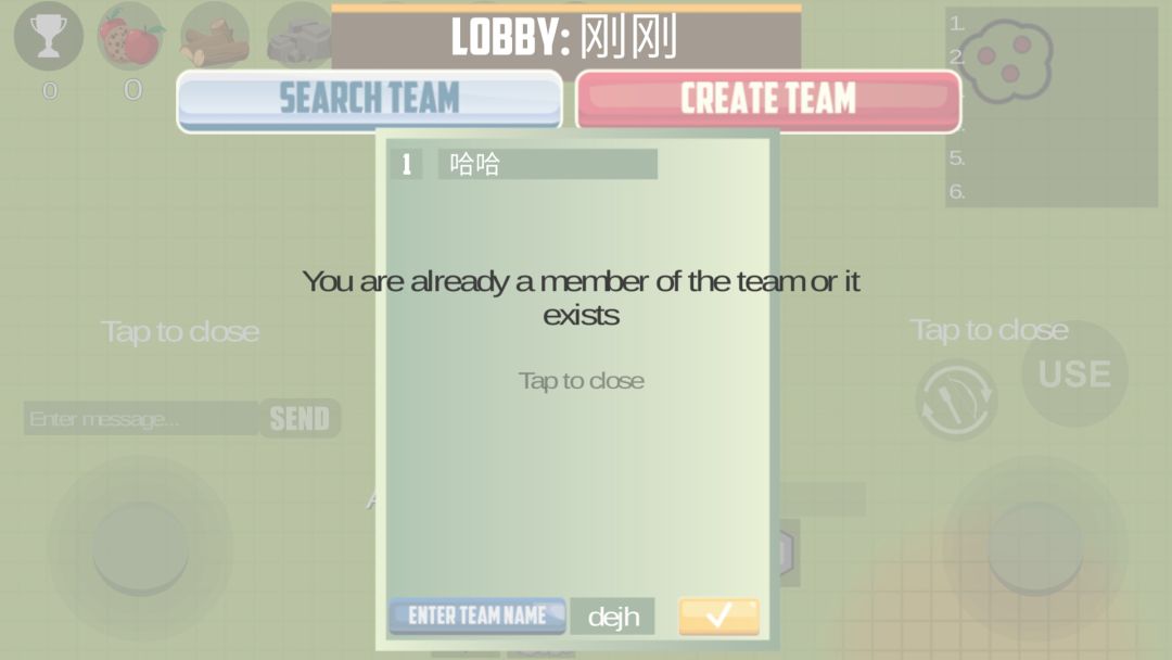 前几天都不可以组队,今天突然点那个金块旁边那个三人头像下面出现了可以起名字的组队框,点了之后出现英文显示我已经在一个队伍里了。新创建的房怎么会已经在队伍里了而且头顶也没有组队的标识。谁组队成功过。看图吧