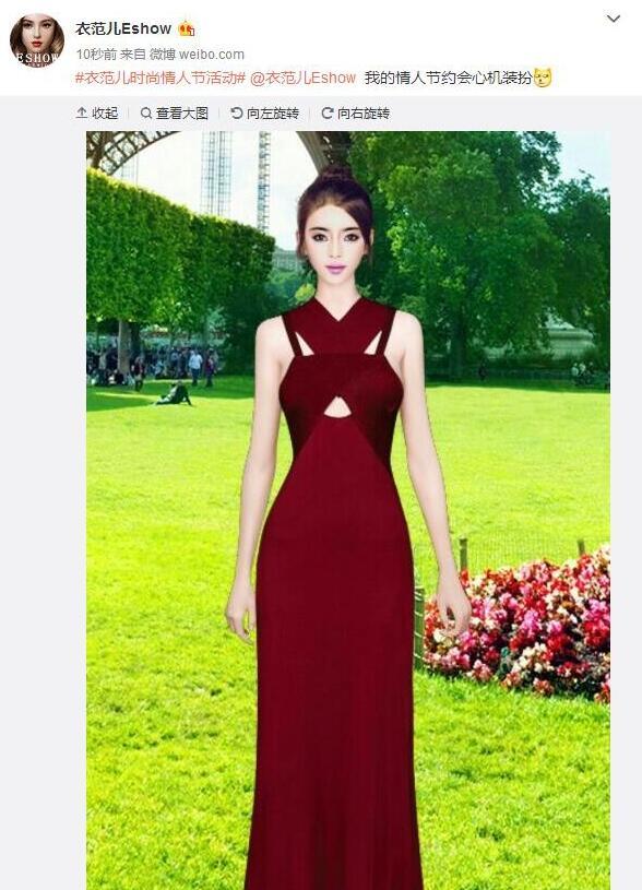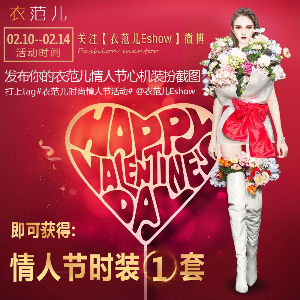 在活动时间内,按照格式发布微博并成功@衣范儿Eshow,即可获得,情人节时装一套。