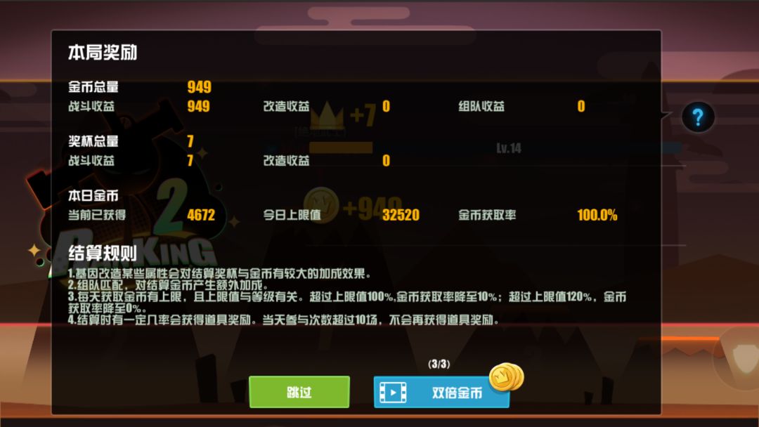 在游戏的结算界面我们还可点击右方的问号,查看当局的详细奖励数据。