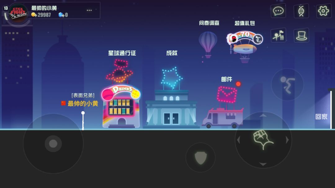 游戏中的技能、商业街、基因改造和创意工坊等面板将根据等级解锁,也就是说,兄dei们只有努力提升等级才能打开一个更加丰富的火柴人世界哦~进入商业街后我们可以看到星球通行证、成就以及邮件功能。