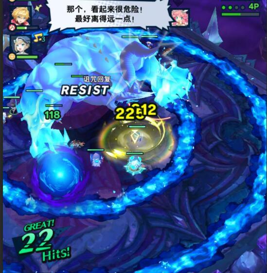 boss会放4个紫圈,并且紫圈会跟着你角色移动,要躲也很简单,当紫圈马上到时间的时候,翻滚出去就行了,然后紫圈爆炸,会在爆炸的地方形成4个大紫圈,除非当时场面混乱看不清(因为地板是颜色和紫圈都是深色),一般不会中招