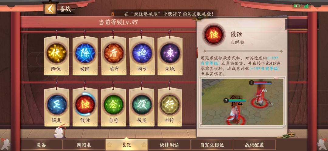 这里顺带讲一下前期的对线思路,前期身板最脆的上单,攻击也并不高,一级对a打不过邪教上单鬼白(可能是我太菜),因此在2级前安心补兵,不要因为手长贪几下平a错失了抢二的机会,很可能就被提前到二的对面给拿下一血,个人推荐二级升被动,通过一技能频繁标记打出被动补兵。等到了三级,基本就是噩梦的存在了,配合二技能加平a刷新被动,在草丛卡视野牵制往往可以配合下面要提到的阴阳术带来奇效。成功过渡到6级配合大招进行击杀。