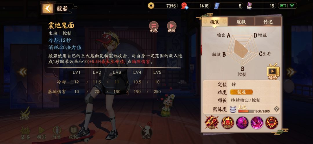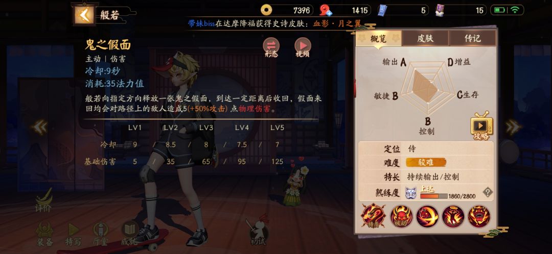一技能【鬼之假面】前期最主要的消耗技能(大雾)前提得配合刷新被动不然伤害特别低,般若线上压制也就得靠一技能和二技能频繁刷新被动。