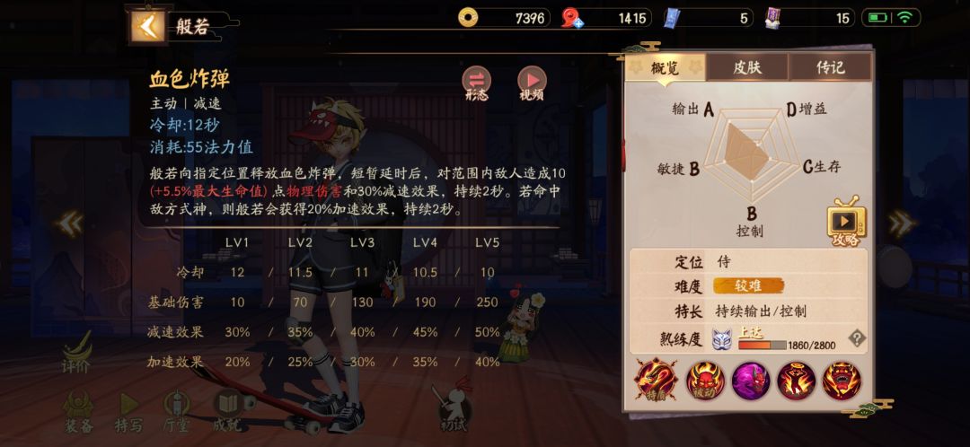 言归正传,这里大致介绍一下般若的技能,放上自己的熟练度(荒酱主玩中单和射手,因此上单熟练度不是很高)