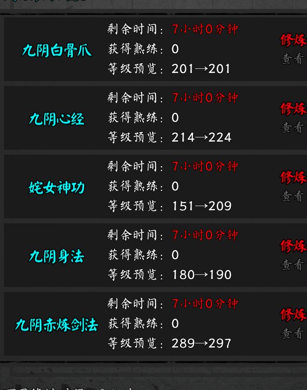 明明武功修炼那里写着可以提升到209级但是到了时间以后等级一点没变😭