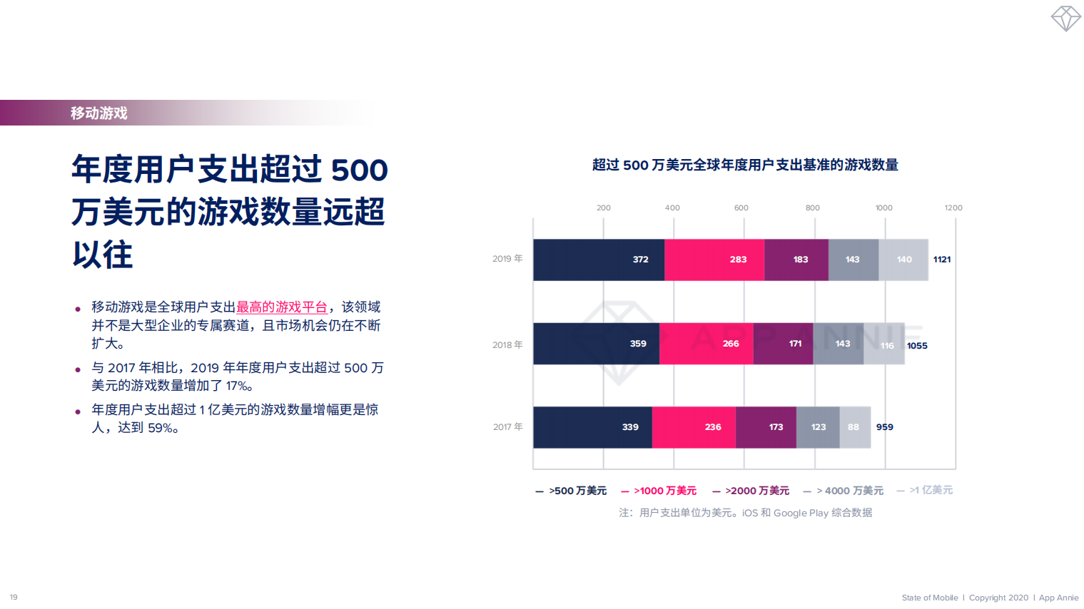 近日,App Annie发布了2020移动市场报告,对2019年的移动游戏市场进行了多个维度的分析。