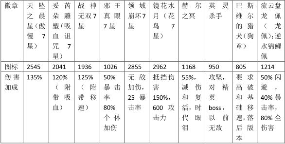 徽章伤害加成最少100%,125%以及更多,泛用性徽章万能搭配,可以先考虑获得。