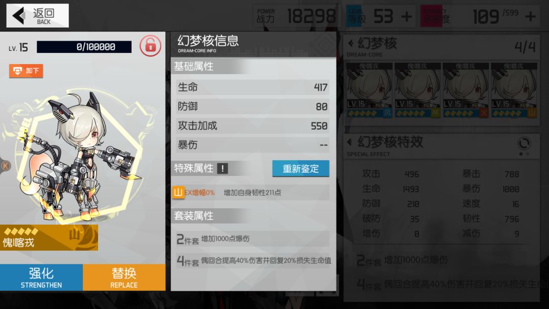 我的2个梦幻核心 面板显示就1000多攻击 但是下面统计为什么才496