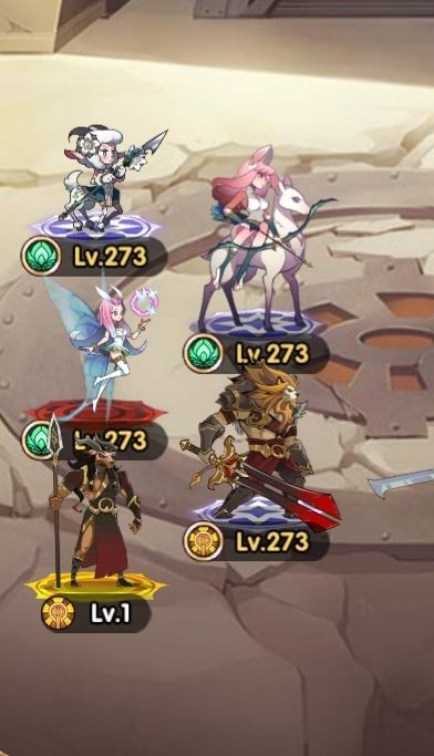 女妖必上场,其他三个打辅助,看情况换。狮子一直没有的话建议尽早迷宫换骨王(如果女妖够了的话),骨王也是T1级强力前排,之所以推荐狮子是因为狮子可以不吃装备和品质强行抗一会。抽到光盾的也可以练起来,也是T1级前排。阵容如下图: