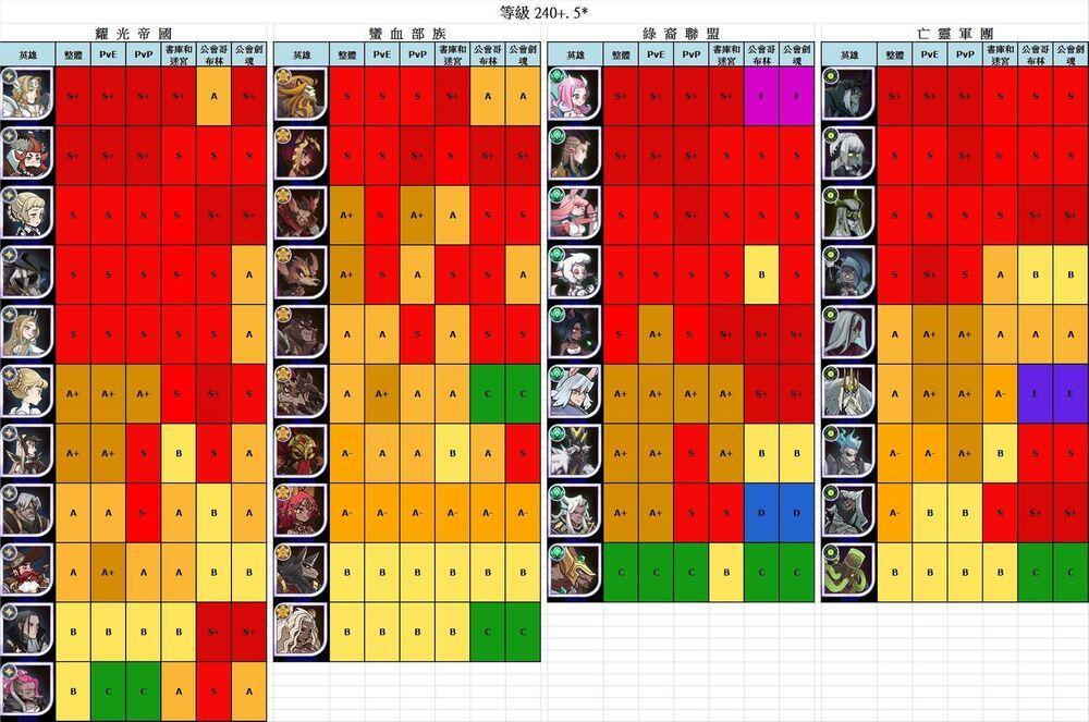 ②中期主阵容,中期:全员240之前。