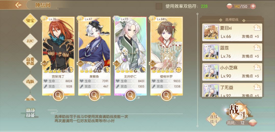 4.楼兰基本每次可以在第一个人A完之后放大,很好清场,全场在4回合之前就只剩牡丹(众所周知牡丹一个人就是憨皮)