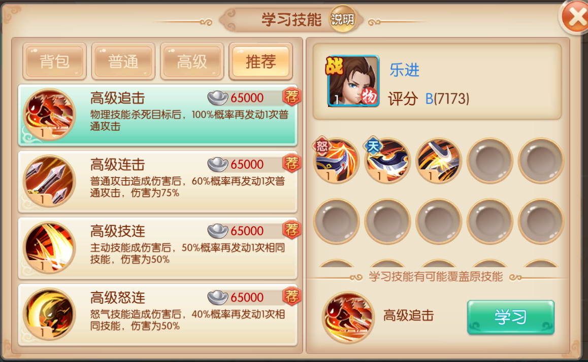每个名将伙伴可以通过打书开孔,获得一个额外的技能位置;