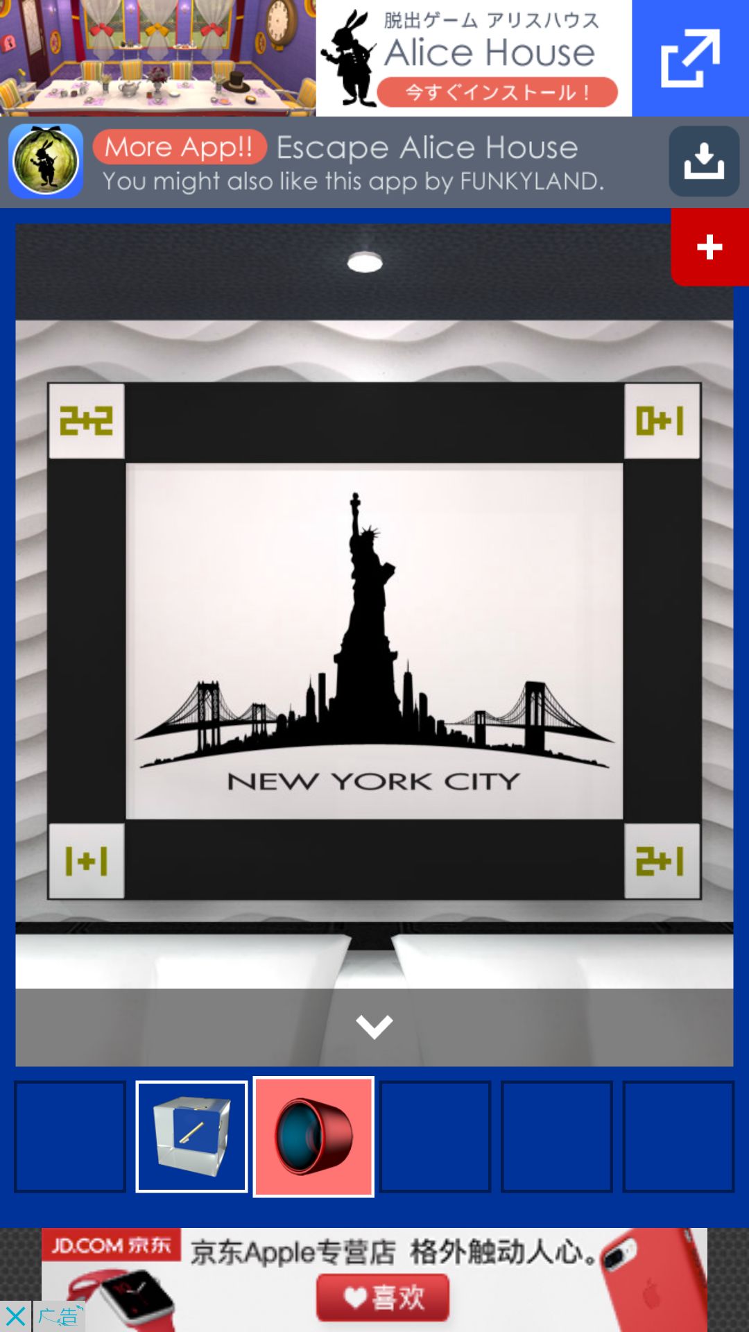 这蛋糕颜色是打开门的基础。纽约自由女神像上的数字可以打开有爱心的纽约画像后面。