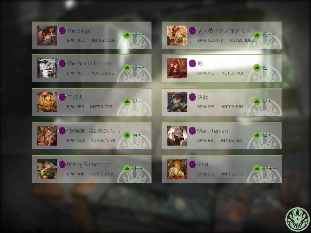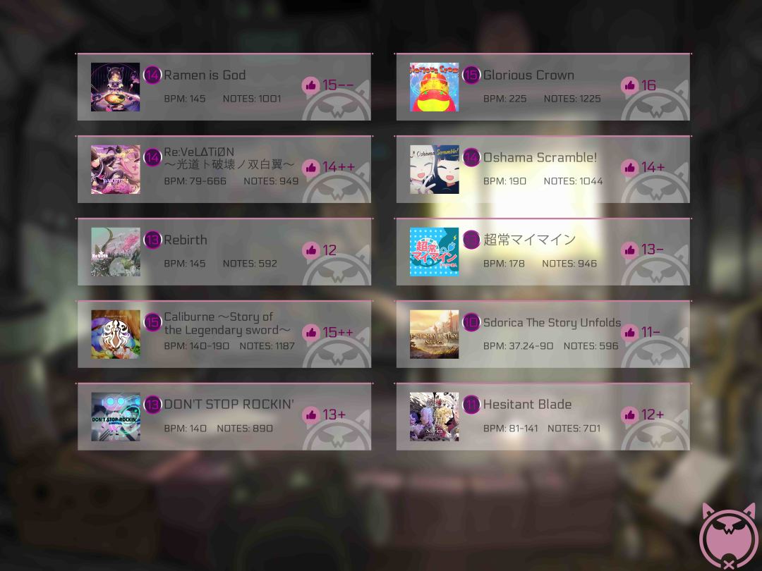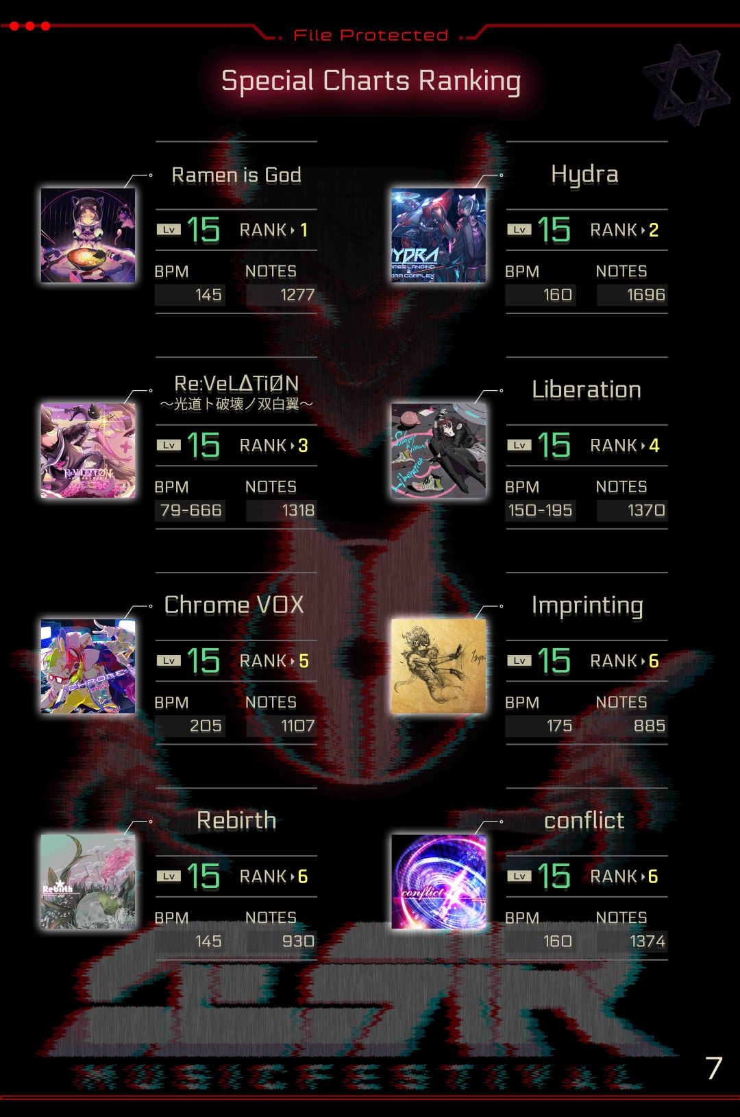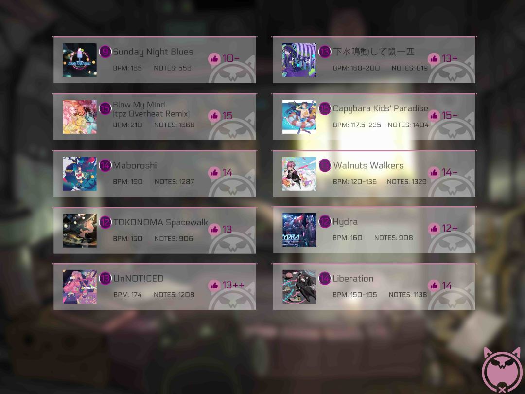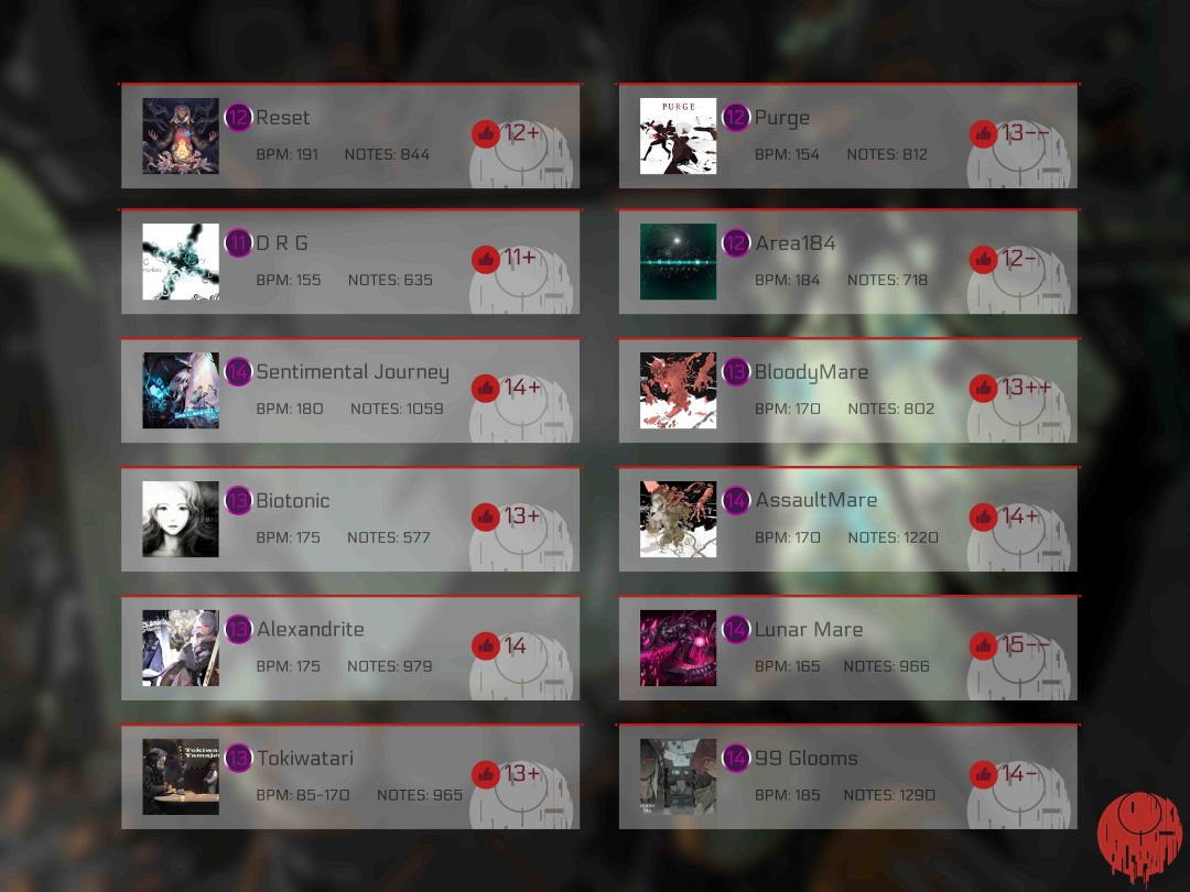 3.对于比较特殊的谱面如《Brain Power》CHAOS谱面和GLITCH谱面,本难度表使用排序法进行标级。