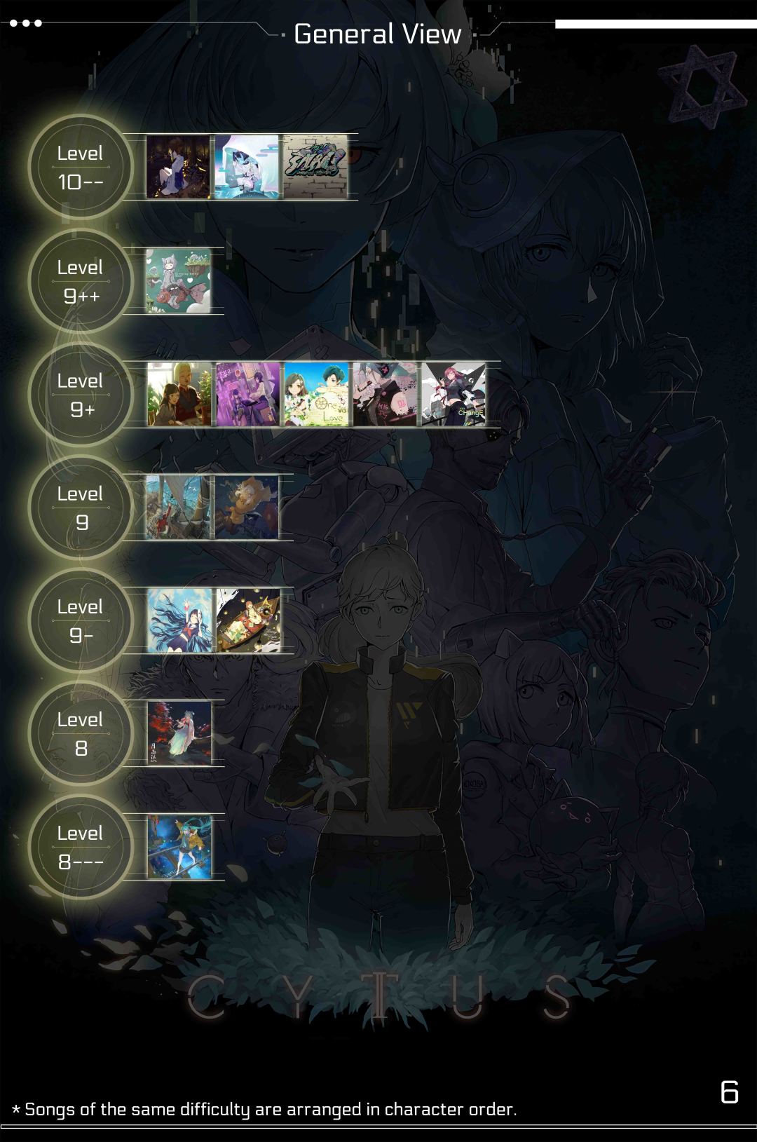 CYTUS II 3.1谱面难度表 By:Team CN:DC