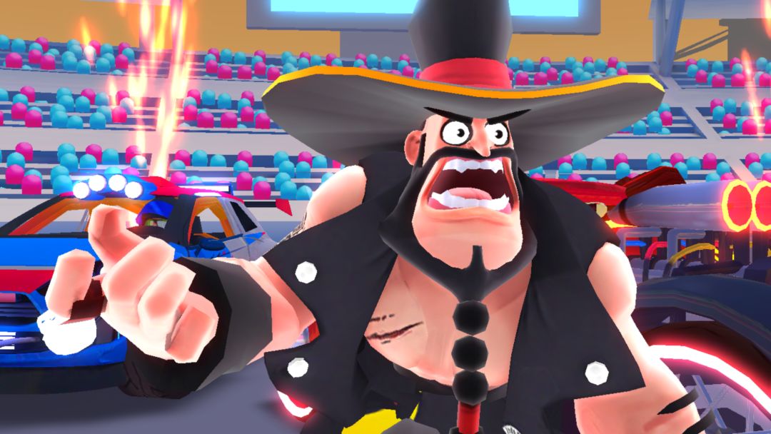 因为不同于传统的赛车竞速游戏,所以游戏画面方面,大量的色彩撞击让游戏整体显得更为戏剧,游戏采用接近美式卡通的Q版风格表现,在场景和载具并没有还原其真实性。虽然场景设计较为简单,但游戏过程中的特效还是不错的,但是音效方面就不是很好了,撞击漂移等都没有音效,bgm十分单一,每场比赛结束后浮夸的表演秀看多了还有点尴尬……
