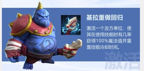此外,广受玩家喜爱的“蓝胖子”法师——基拉回归,经过这一次的调整,基拉的技能变为,可以激活一个友方单位,使其在使用技能时,30%/40%/50%几率获得100%魔法值并重置技能冷却时间。基拉法师的回归,又为法师阵容增添了一员猛将,让法师阵容的热度再次提升,相信这枚棋子会在新赛季大放异彩。
