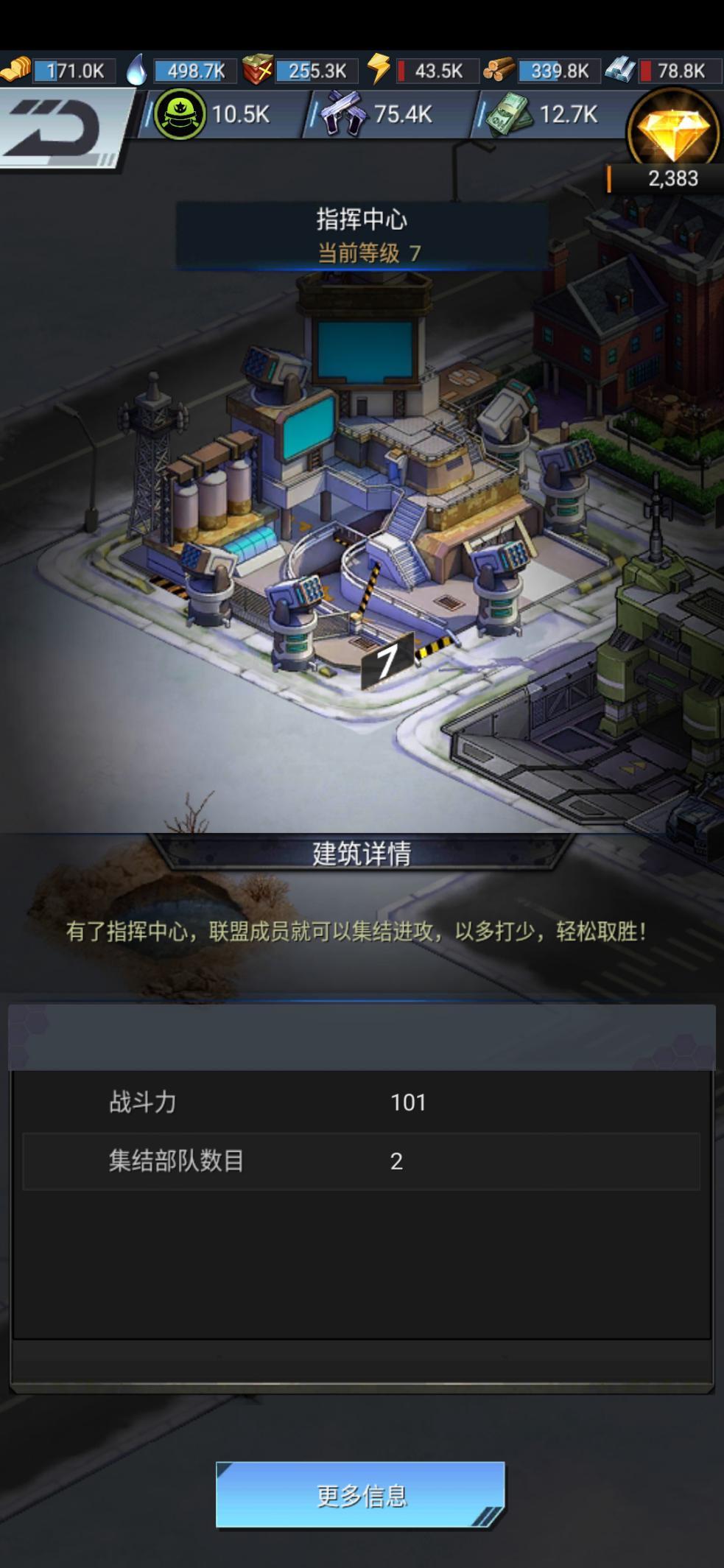指挥中心是负责指挥派遣部队的中心系统。在进攻他人城市与进攻世界BOSS小丑温德尔时,玩家可以凭借其内部的集结功能,召集联盟内的盟友,共同攻击;也可以在指挥中心的联盟战争功能中,查看战争记录。