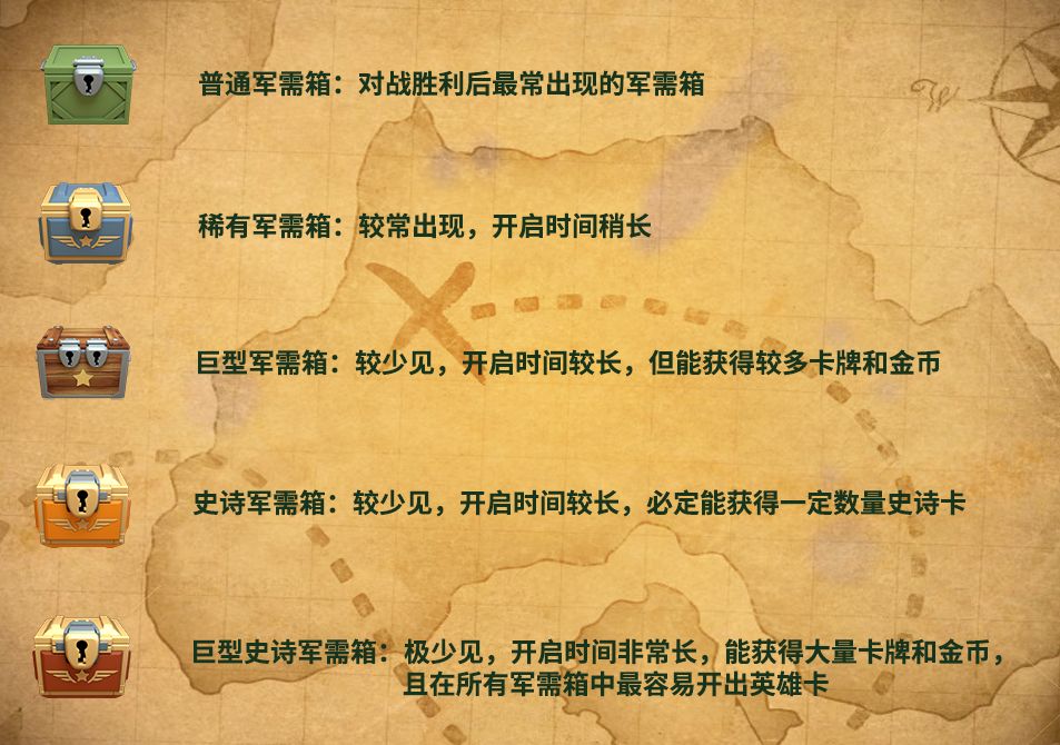 在《战区英雄》里,玩家的卡牌和金币几乎都是来源于各类军需箱中,今天我们就带来了游戏内各个军需箱的资讯内容,供各位小伙伴进行了解。
