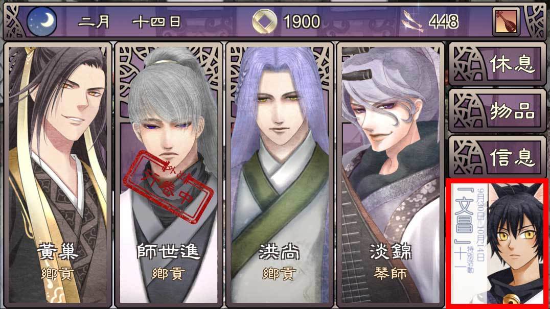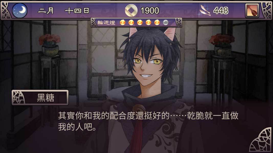 黑糖的大部分培养方式和正常的房客一样,但是由于是猫,一开始是不会说话的。请首先育成他的学识,让他可以稍微说话后再前往宴会和行卷吧。