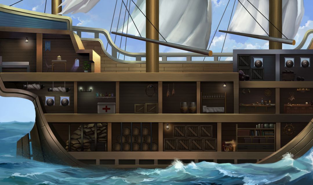 我们将船舱分为:舰长室、副官室、炮台、水手室、货仓、医疗室和娱乐室,不同的船舱会对在舱内的人员有不同的资质加成。通过提升爵位可以提升舰船的等级,开放更多的舱位,从而可以派遣更多的将军进入船舱提升实力。