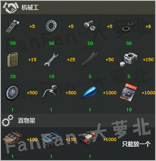 在v1.15同时推出的废品场,每3天出现一次。可以让我们有一定机会拿到ATV的相关稀有零件。这个阶段,或多或少都有多余的摩托零件可以投到机械工那里拿到摩托升级奖励。