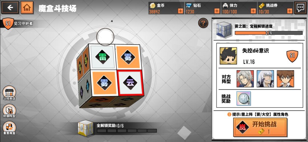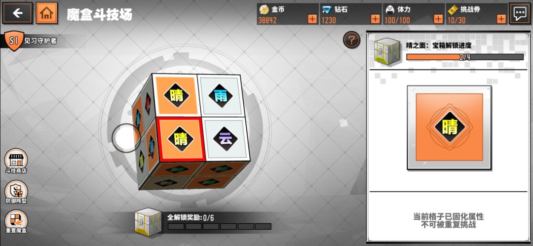 魔盒斗技场就像我们小时候玩的魔方,一共六面,每面四个格子,每个格子固化了一种属性,四个格子的属性不完全相同。